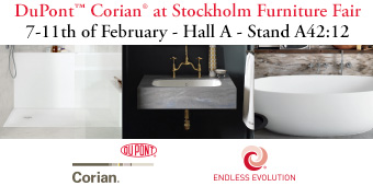In its stand (Hall A, Stand A42:12) at Stockholm Furniture & Light Fair 2017 (Feb. 7-11, Stockholm, Sweden), Corian® will display its renewed and expanded offering for residential and commercial kitchen and bathroom environments, and ranges of fascinating colours made with unique manufacturing technologies.
