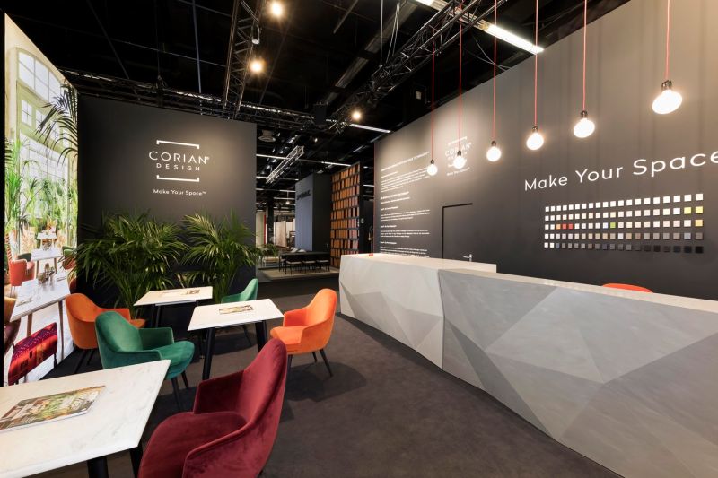 Eine Reihe von Installationen – von der Wohnküche, Hotelempfang, Einzelhandelsumgebungen, bis hin zu Restaurantgestaltung - haben die Eleganz, Vielfalt und Vielseitigkeit der neuesten Farben von Corian® Solid Surface demonstriert und die Aufmerksamkeit von Tausenden von Fachleuten auf dem Gebiet der Innenarchitektur, Küche, Badezimmer, Wohn- und Geschäftsausstattung gewonnen.